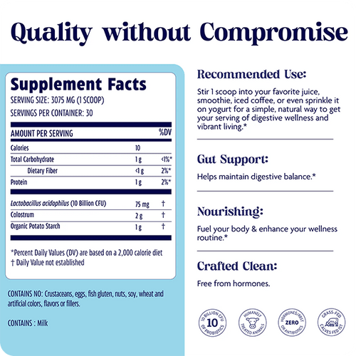 Enhance your immune defense and gut harmony with Enzymedica's Colostrum+. This powerful formula combines nutrient-dense bovine colostrum, packed with natural antibodies, with beneficial probiotics. Together, these ingredients work synergistically to strengthen your immune response while promoting digestive wellness for comprehensive health support.