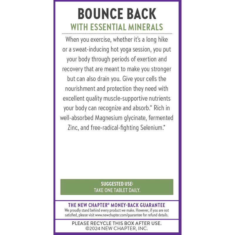 Support your body's recovery with New Chapter's comprehensive mineral complex. This blend combines three essential nutrients to address post-workout needs. Magnesium supports muscle function and cellular energy production while maintaining electrolyte balance. Selenium provides powerful antioxidant protection, defending cells against oxidative stress. Zinc replenishes mineral stores depleted during physical activity. Together, these synergistic minerals work to restore what your body needs most after exercise, helping you bounce back stronger and feel your best.