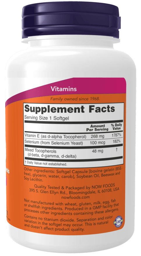 Vitamin E is a major fat-soluble antioxidant that is particularly important for maintaining cellular health.* Selenium is an essential trace mineral that has been included as a complement to vitamin E.*