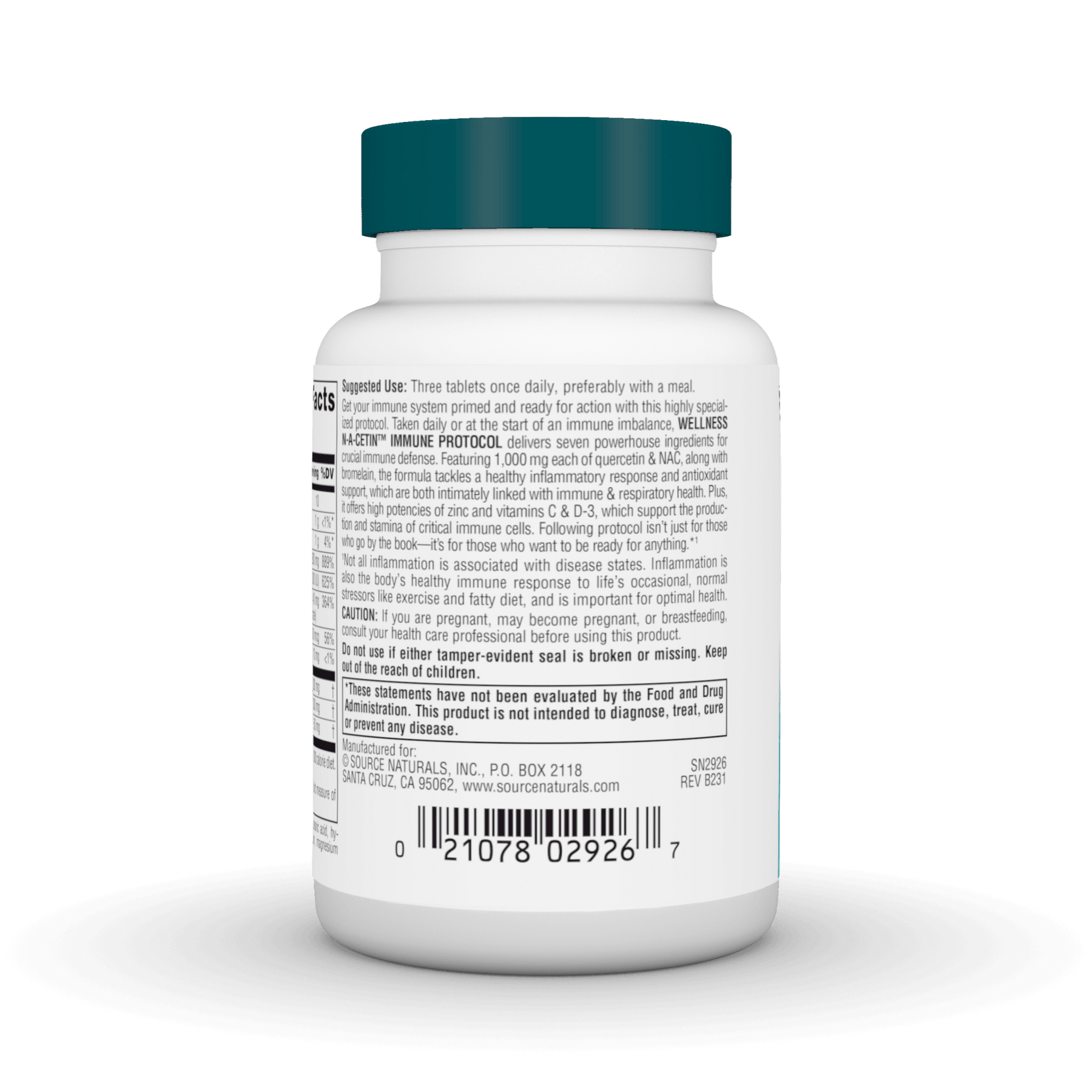 Wellness N-A-Cetin Immune Protocol from Source Naturals provides seven powerhouse ingredients for crucial immune defense. It features quercetin, NAC, and bromelain to support a healthy inflammatory response and provide antioxidant support, which are both intimately linked with immune and respiratory health. Plus it offers high potencies of zinc, vitamin C and D3 which support the production and stamina of critical immune cells.