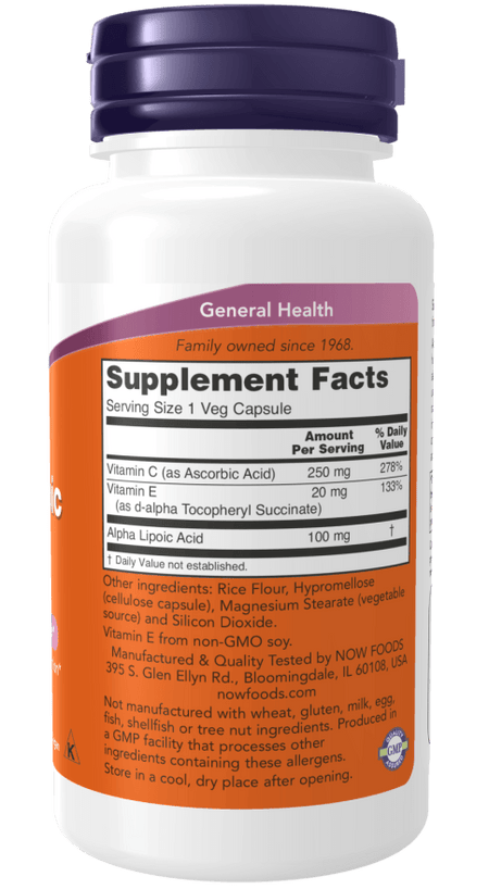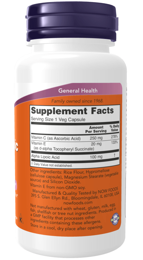 Alpha lipoic acid (ALA) is produced in the human body in very small amounts, but is also available through food sources. ALA is unique because it supports the body's free radical scavenging systems and can function in both water and fat environments.* ALA can also recycle the antioxidant vitamins C and E, thereby extending their activities.*
