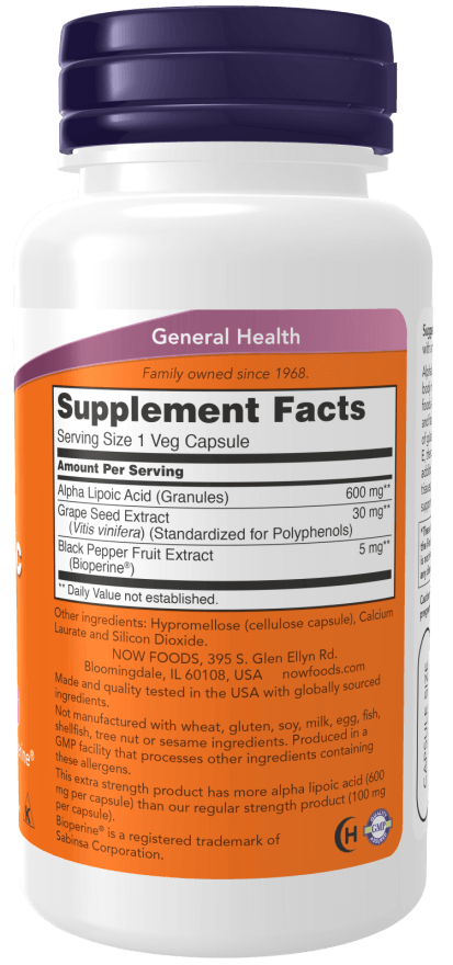 This extra strength product has more alpha lipoic acid (600 mg per capsule) than our regular strength product (100 mg per capsule).
