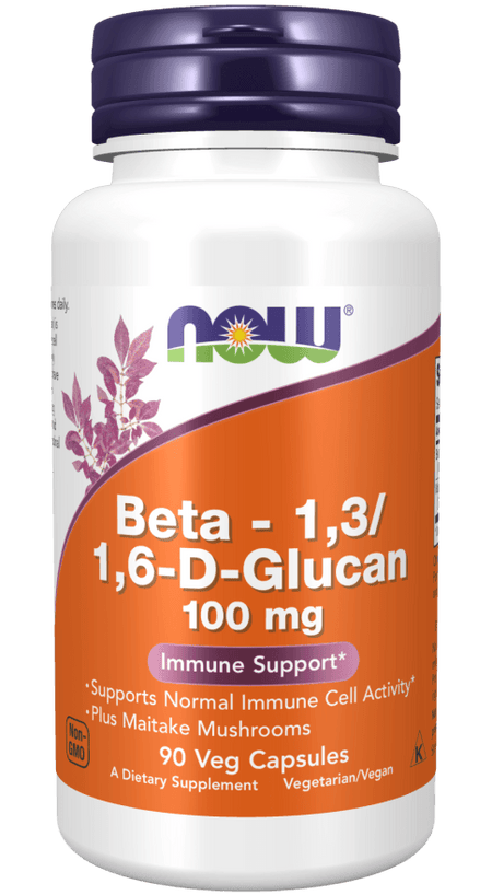 NOW® Beta-1,3/1,6-D-Glucan (Beta-Glucan) is a bioactive carbohydrate derived from the cell wall of Saccharomyces cerevisiae, commonly known as Bakers' yeast. NOW® Beta-Glucan is blended with Maitake Mushrooms for complementary support.