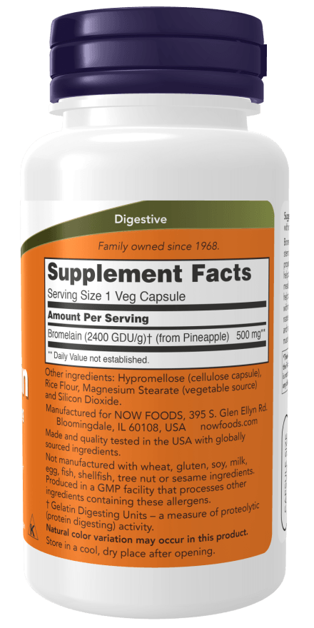 Bromelain is a proteolytic enzyme derived from the stem of the pineapple plant that has protein-digesting properties.* When taken with food, bromelain can help to support healthy digestion; when taken between meals, it may help to support joint comfort and may help to relieve temporary soreness that is associated with muscle overuse.* Bromelain is designed by nature to support proper gastrointestinal function and may also help to promote the comfort of muscles and joints.*