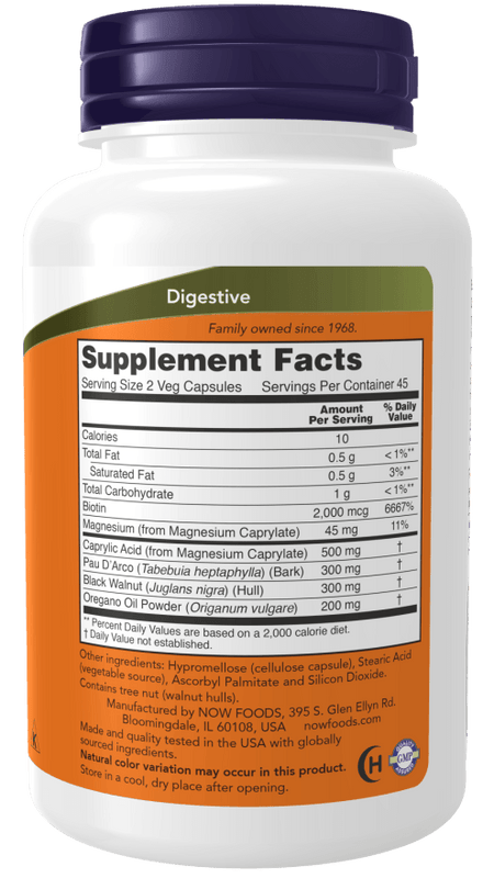 - With Pau D'Arco, Oregano Oil, Black Walnut & Caprylic Acid