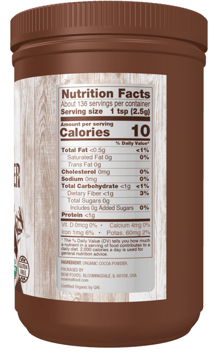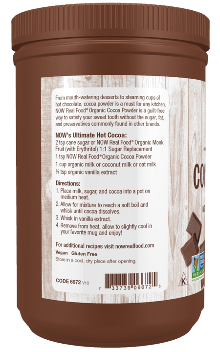 From mouth-watering desserts to steaming cups of hot chocolate, cocoa powder is a must for any kitchen. NOW Real Food® Organic Cocoa Powder is a guilt-free way to satisfy your sweet tooth without the sugar, fat, and preservatives commonly found in other brands.