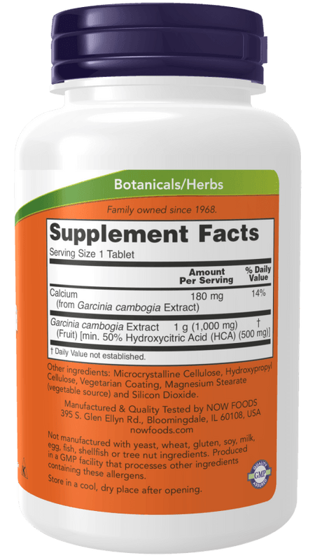 Garcinia cambogia is a plant native to SE Asia that has been used for centuries by traditional herbalists. Garcinia's primary bioactive constituent, Hydroxycitric Acid (HCA), has been extensively studied for its effects on citrate lyase, which is the main enzyme responsible for the cellular synthesis of fatty acids. Scientific studies indicate that in the presence of HCA, cells produce fewer fatty acids from carbohydrates.* NOW® Garcinia is standardized to 50% HCA and tested to guarantee 500 mg HCA per tablet.