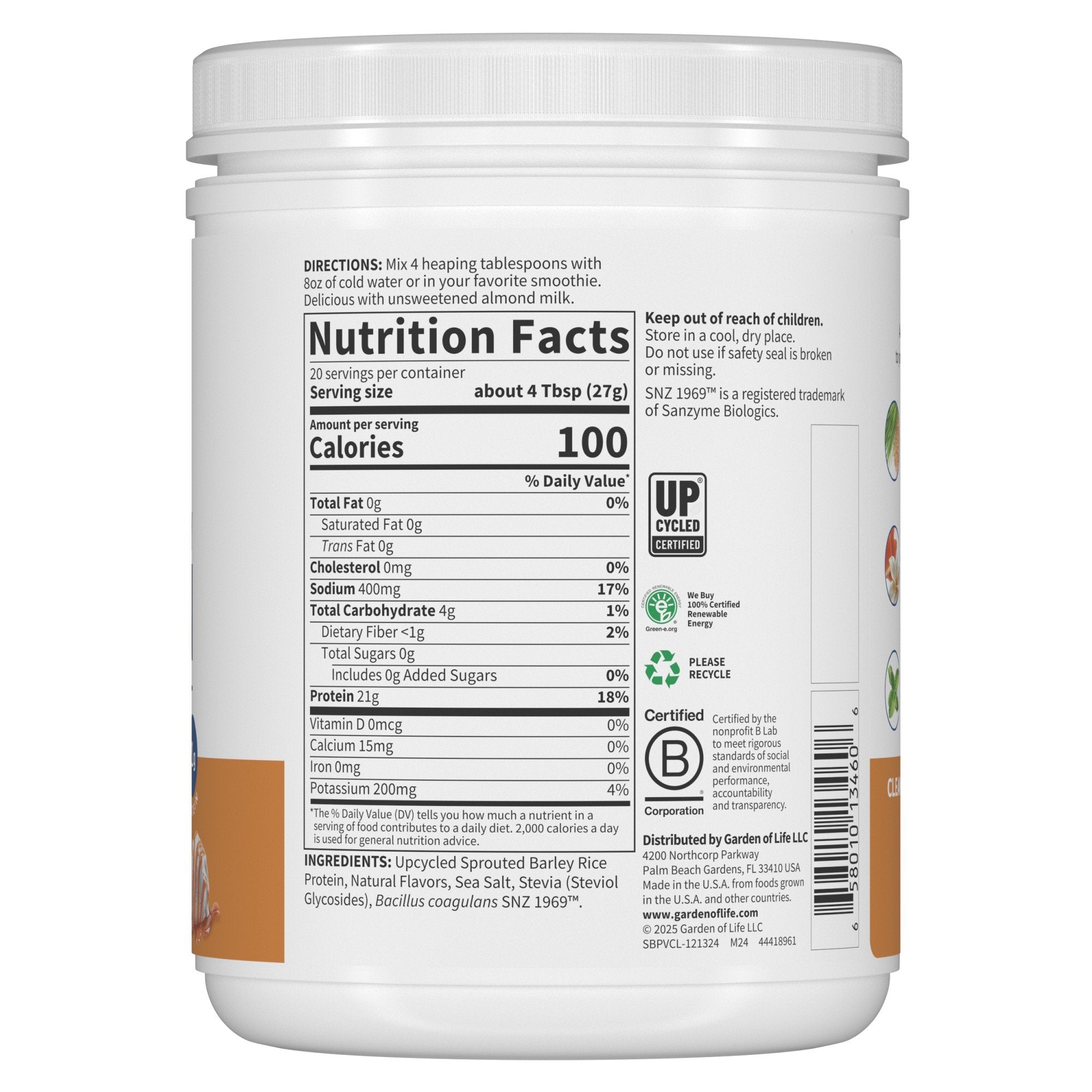 Garden of Life Protein Barley Vanilla Caramel 1Lb