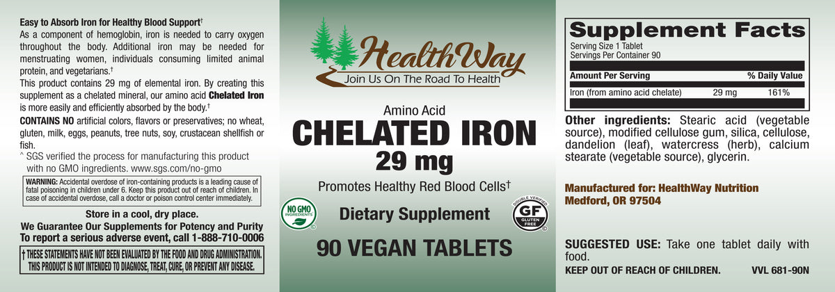Iron is essential for carrying oxygen throughout the body and is a key component of hemoglobin. This supplement, containing 29mg of elemental iron, can help support menstruating women, individuals with low animal protein intake, and vegetarians. By chelating the iron with amino acids, our product ensures better absorption and utilization by the body.
