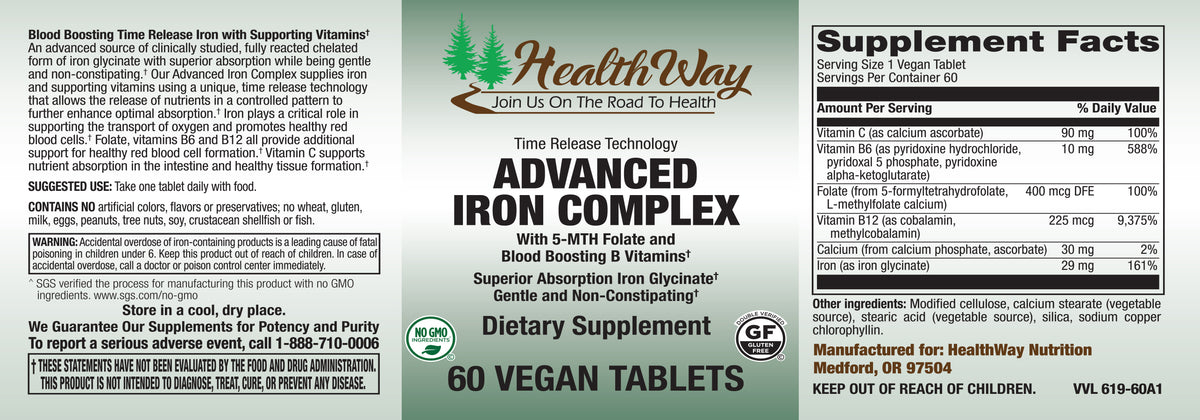 This iron supplement features a scientifically researched form of iron glycinate that is highly absorbable and gentle on the body. Through our unique time release technology, nutrients are released in a controlled manner for optimal absorption. Iron is essential for oxygen transport and the promotion of healthy red blood cells, while folate, vitamins B6 and B12 provide additional support for red blood cell formation. Plus, vitamin C helps with nutrient absorption and tissue health.