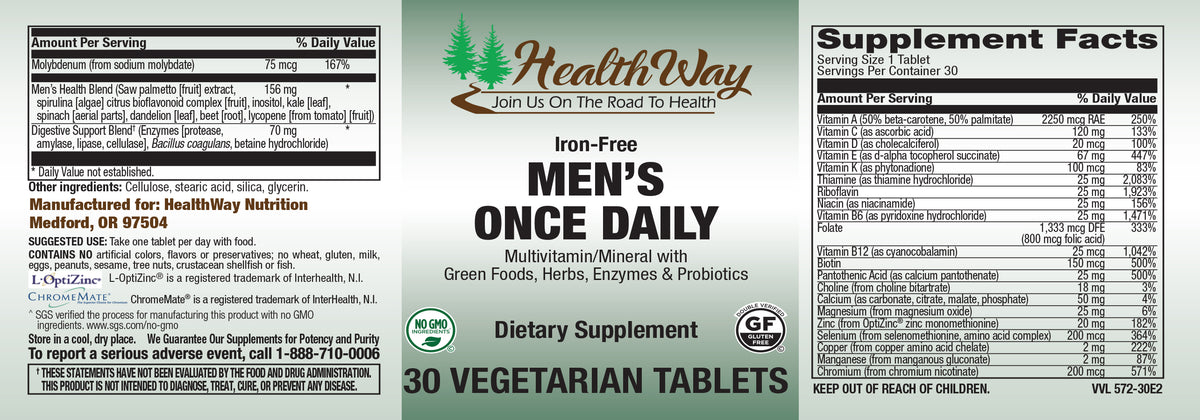 Heathway Men's Once Daily 30tb is a multi-vitamin that is designed specifically for men's individual nutritional needs. This supplement has a complete blend of essential vitamins and minerals that promote overall health, boost energy, and strengthen the immune system. It includes vital nutrients such as Vitamin D, Vitamin B12, and Zinc to support bone health, improve metabolism, and enhance reproductive health. Easy to take and convenient, Heathway Men's Once Daily 30tb provides all the necessary nutrients to keep you healthy and active every day.