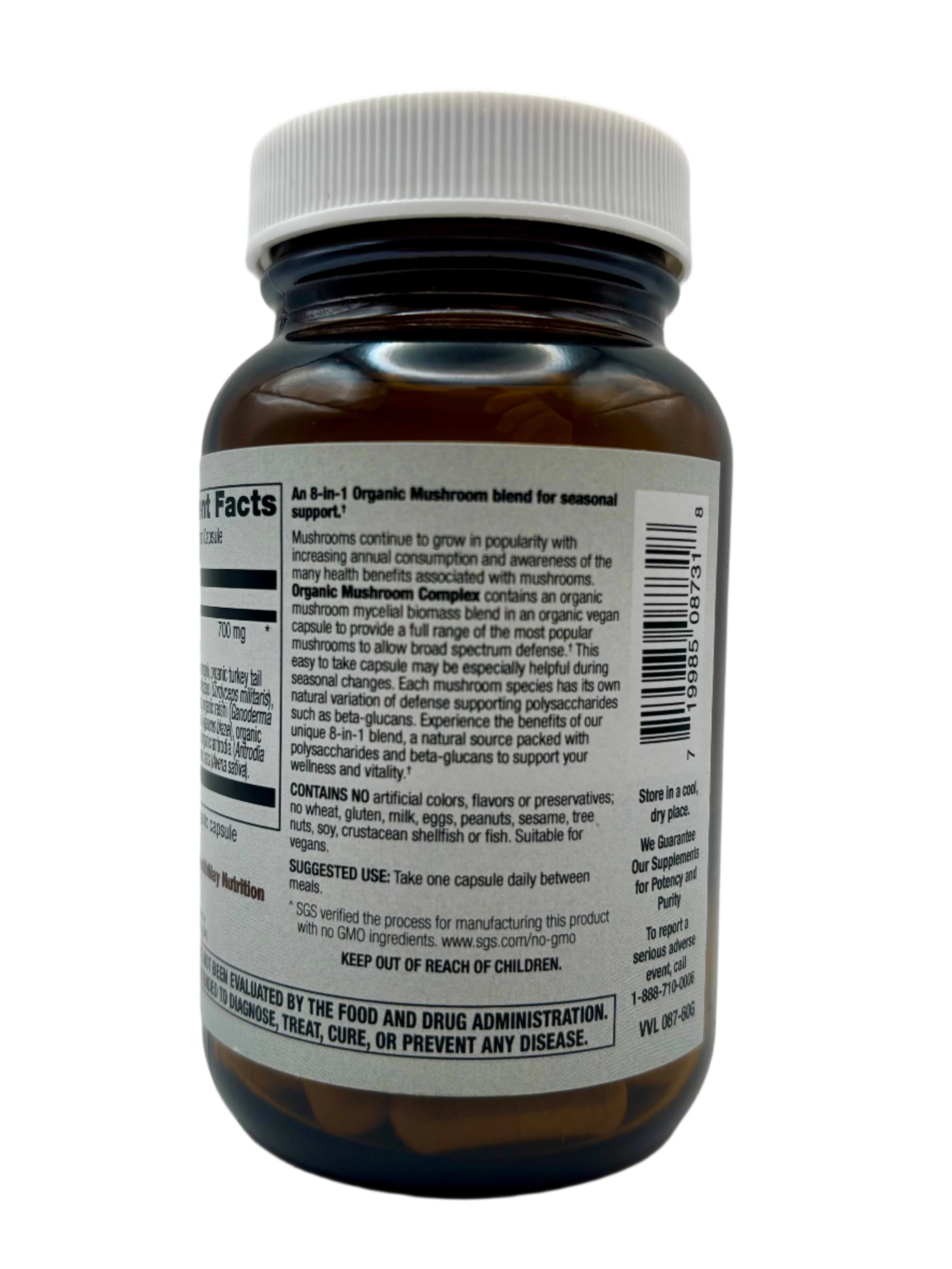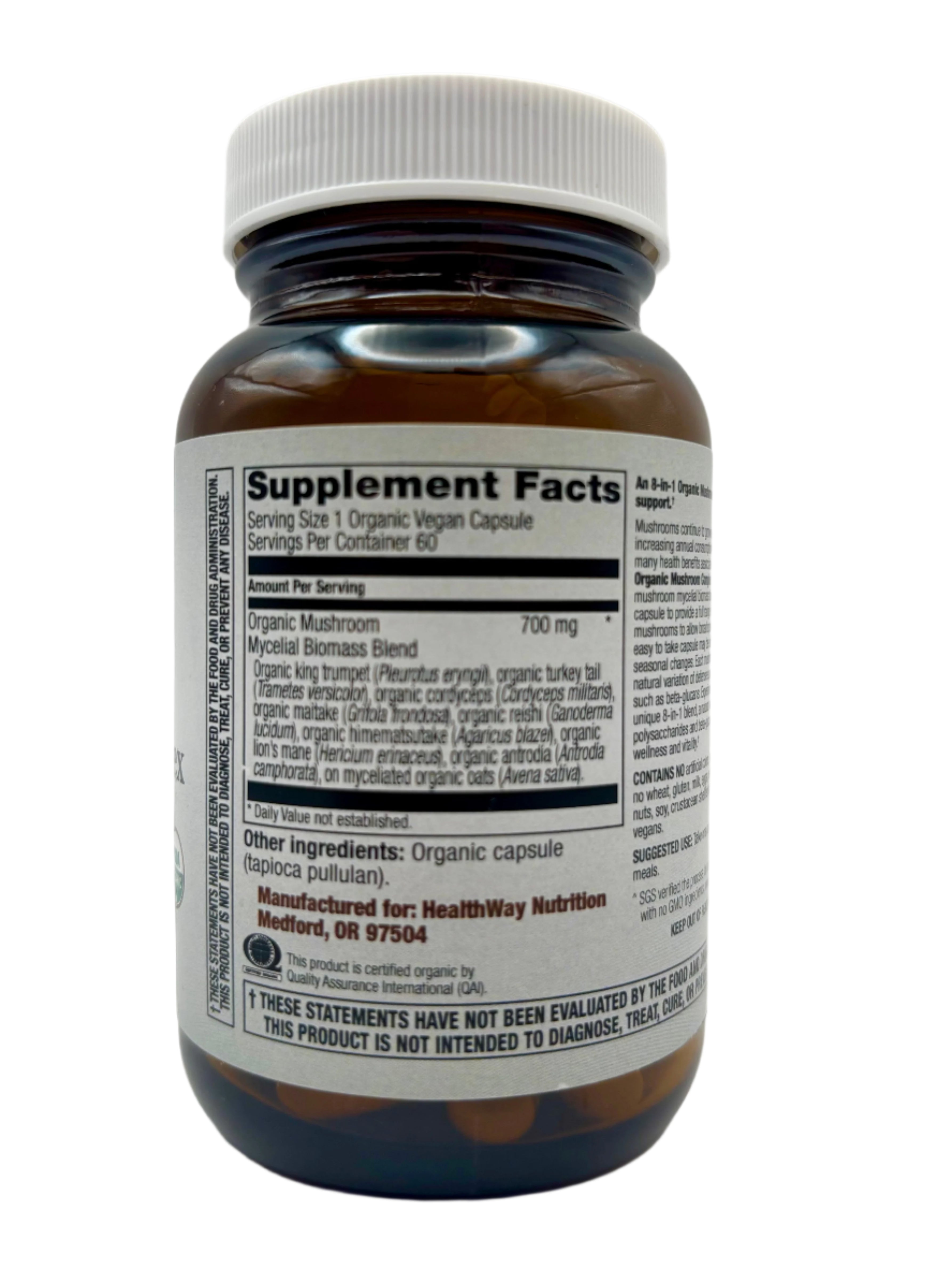 Discover the health benefits of mushrooms with Mushroom Complex Mix. This vegan capsule contains a blend of organic mushroom mycelial biomass to provide a full range of popular mushrooms. Perfect for seasonal changes, this easy-to-take capsule supports your natural defense with 8 powerful mushroom species.