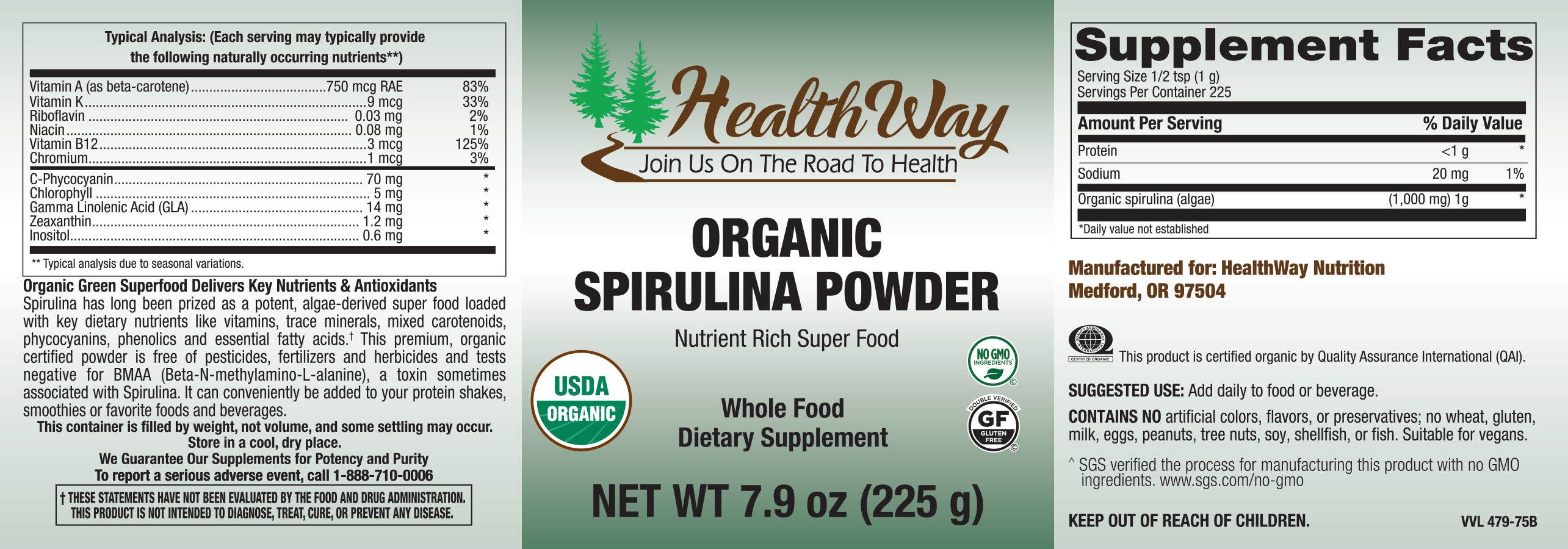 This organic certified spirulina powder is a highly sought-after super food that is rich in key dietary nutrients such as vitamins, trace minerals, mixed carotenoids, phycocyanins, phenolics, and essential fatty acids. It is free of pesticides, fertilizers, and herbicides, and has been tested negative for BMAA (Beta-N-methylamino-L-alanine), a toxin sometimes found in spirulina. You can easily incorporate it into your daily routine by adding it to protein shakes, smoothies, or your favorite foods and drinks.