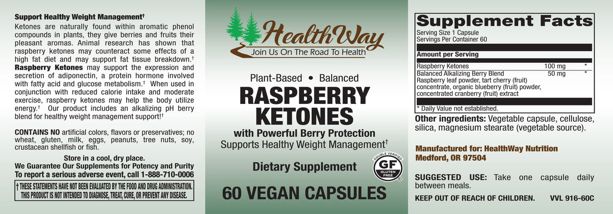 Discover the natural power of raspberry ketones found in aromatic phenol compounds in plants, giving berries and fruit their delightful scents. Research in animals suggests that raspberry ketones may counteract some effects of a high fat diet and promote fat tissue breakdown. These ketones may also boost the expression and secretion of adiponectin, a protein hormone that aids in fatty acid and glucose metabolism. By incorporating raspberry ketones into a reduced calorie diet and moderate exercise routine, you can help your body utilize energy more efficiently. Our product also includes an alkalizing pH berry blend to support healthy weight management.