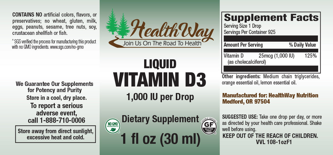 Clean, potent and simple! This quality vitamin D3 liquid supplies 1000iu/25mcg per drop, making it easy to adjust for the dose you need.