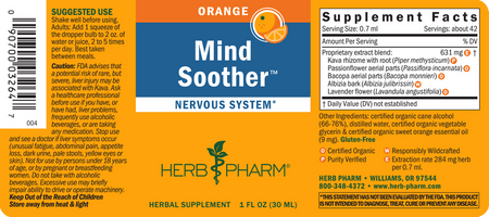 Mind Soother™: Orange features Kava prepared from the rhizome and root of noble varieties of Piper methysticum plants grown and harvested in Vanuatu. It also features Passionflower prepared from the flowering herb (leaf, flower and stem) of Certified Organic Passiflora incarnata vines.