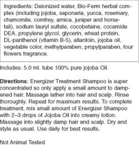 Hobe's Energizer™ Treatment Shampoo with Jojoba Oil penetrates these layers of waxy sebum and removes them without chemicals or harsh detergents, thus promoting growth of thicker, healthier hair. Vitamin B5 and Wheat Protein add volume to each hair shaft while Allantoin and our proprietary Bio-Ferm® Herbal Complex soothes and repairs damaged hair and scalp.