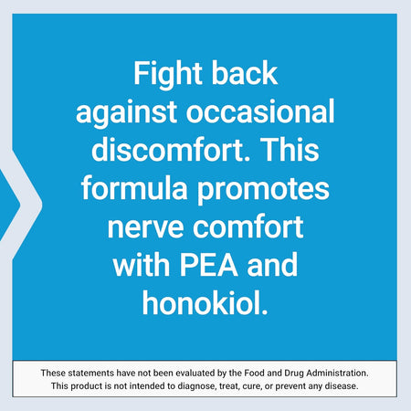 PEA inhibits inflammatory factors to support nerve cell health. Honokiol encourages healthy levels of calming neurotransmitters in the brain. Together, they help alleviate minor discomfort.