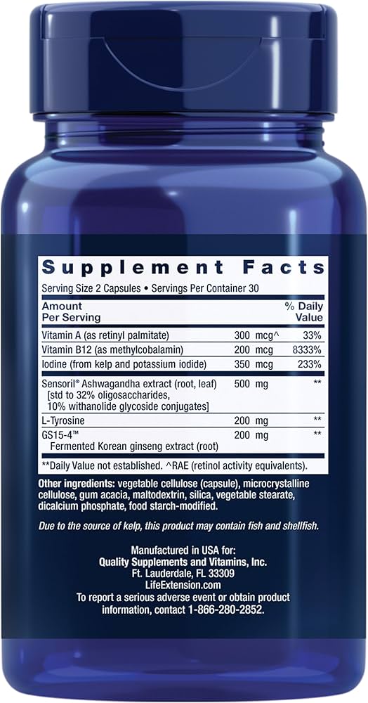 Discover the benefits of Thyroid Support Complex: a powerful blend of ashwagandha, iodine, Korean ginseng, and more to support the production and activation of thyroid hormones. Plus, get a boost of vitamin B12 for optimal thyroid function and vitamin A for healthy serum T3 levels.