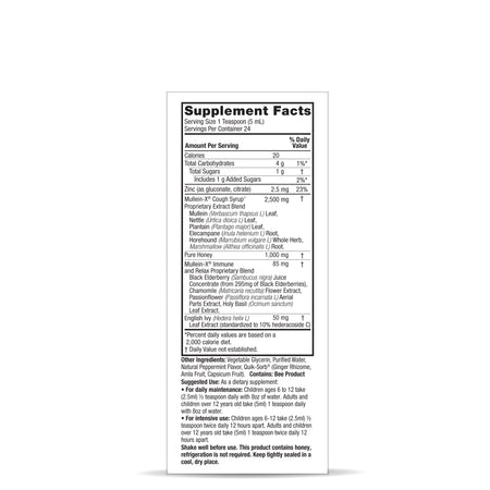 Mullein X cough syrup is a natural blend of key herbal ingredients that was inspired by and developed utilizing modern and traditional herbology to help support upper respiratory health. Our cough syrup is formulated to help clear mucus, help soothe an irritated throat and support immune and upper respiratory health. Not only do you get the great benefits to help support upper respiratory systems it also gives you the benefit of relaxation with the help of chamomile, passionflower and Holy basil.