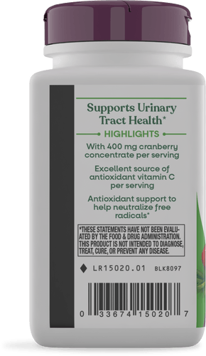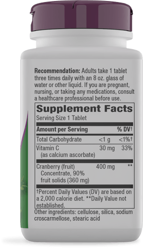 Nature's Way® 90% Cranberry fruit solids is combined with Vitamin C for maximum benefit. Nature's Way sources cranberry from areas where it grows best like the bogs of Wisconsin and Massachusetts.