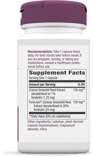 Forskohlii is a plant in the mint family. The plant is native to southern Asia, in places like India, Nepal, and Thailand and has been traditionally used as an Ayurvedic herb. Nature's Way® uses a specially designed extract called ForsLean® that guarantees 20% forskolin and may support healthy body composition through improved fat utilization.