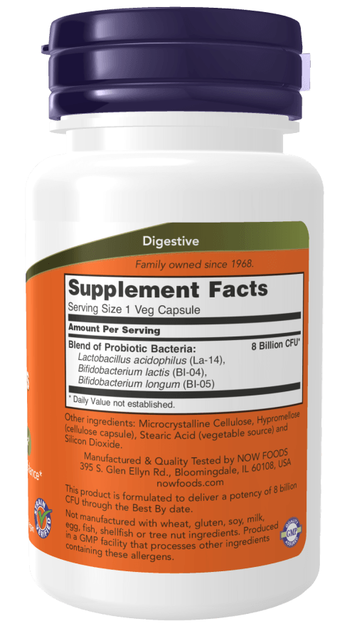 This NOW product has a blend of the two prominent types of resident intestinal bacteria. Regular intake of probiotics can aid in maintaining healthy intestinal flora.*