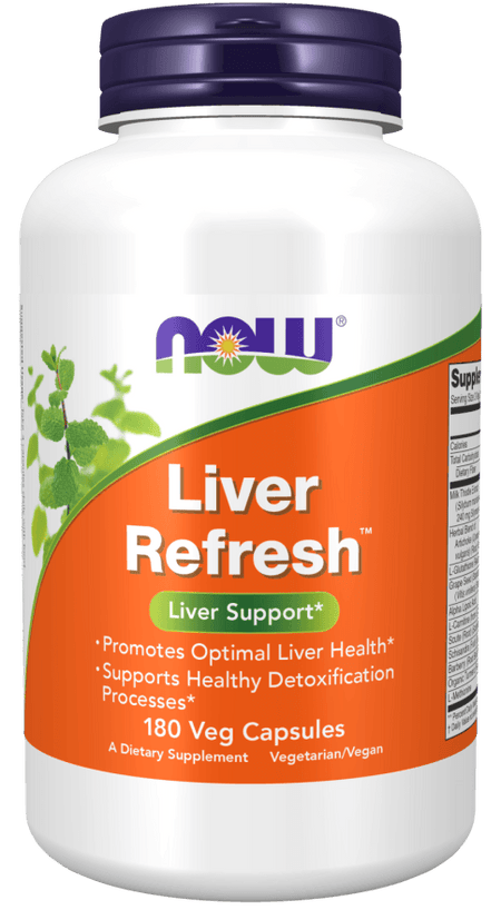 Help support liver health and your body’s vital detoxification processes with NOW® Liver Refresh™, a combination of nutrients and herbs designed to support the liver’s role in these processes.* Liver Refresh™ combines milk thistle extract with a unique herbal blend to create a balanced botanical formula for the support of healthy liver function.* Glutathione is included as a potent free radical scavenger that also plays a critical role in maintaining the body’s normal elimination pathways.*