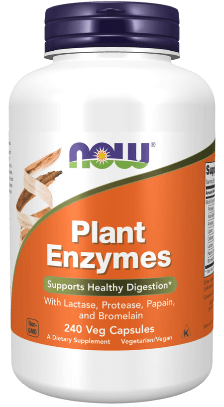 NOW® Plant Enzymes is a comprehensive blend of enzymes that helps to support proper digestion.* This product's combination of enzymes assists in the breakdown of fats, fiber, proteins, and carbohydrates, thus optimizing the availability of nutrients in the food you eat.* NOW® Plant Enzymes also includes lactase to support the digestion of dairy products for those who are sensitive to lactose.*