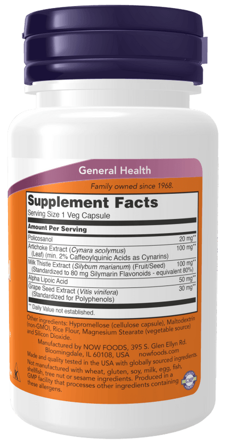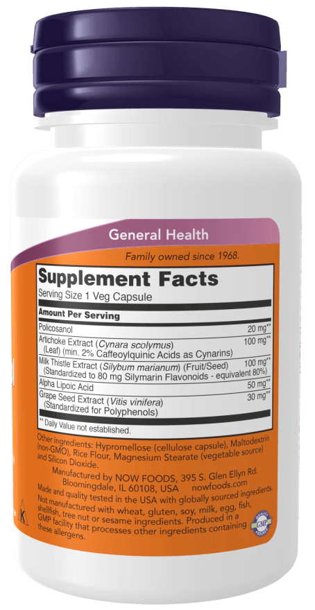 Policosanol is a blend of long-chain fatty alcohols (LCFAs) derived from plant waxes that is comprised primarily of naturally occurring octacosanol. This formula also includes herbs such as artichoke and milk thistle that are known to support healthy liver function.*