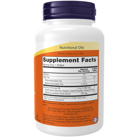 NOW® Super Primrose Oil has naturally occurring gamma linolenic acid (GLA), an Omega-6 fatty acid also found in borage and black currant seed oils. Although the body can synthesize GLA from other dietary fats, it can be more efficiently utilized for bodily functions when consumed in its preformed state.* By supporting the body’s healthy immune system responses, GLA may help to maintain normal skin barrier function, as well as a healthy vascular system.*