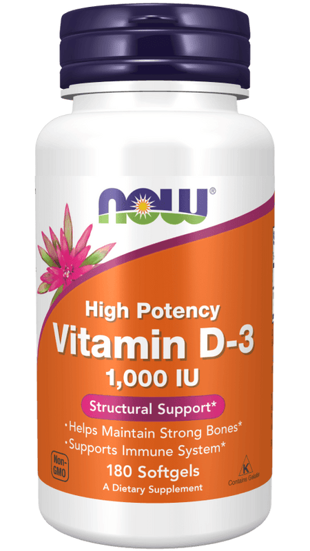 NOW® Vitamin D-3 softgels supply this key vitamin in a highly absorbable liquid softgel form. Vitamin D is normally obtained from the diet or produced by the skin from the ultraviolet energy of the sun. However, it is not abundant in food. As more people avoid sun exposure, vitamin D supplementation becomes even more necessary to ensure that your body receives an adequate supply.