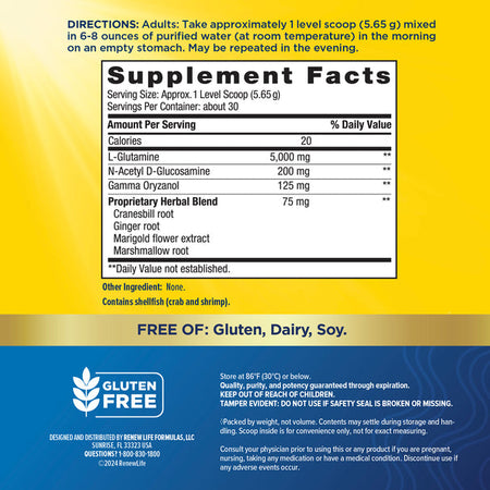 Strengthen your digestive wellness with Renew Life's IntesiNew powder, a gluten-free formula designed to nourish and protect your intestinal health. This easy-to-mix supplement combines scientifically-selected ingredients like l-glutamine, n-acetyl d-glucosamine, gamma oryzanol, and botanical extracts including ginger, marigold, marshmallow, and cranesbill. Together, these components work to support your gut's protective lining and promote a balanced gastrointestinal system. Simple to incorporate into your daily routine, IntesiNew empowers you to take an active role in maintaining digestive comfort and resilience.