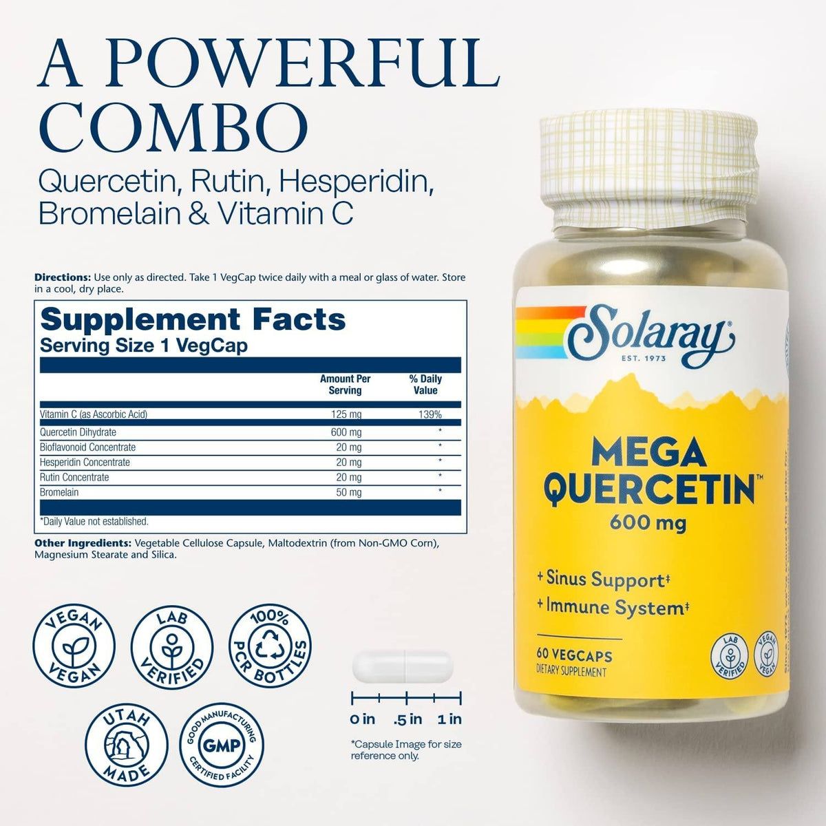 - Expert blend of bioflavonoids including 600 mg quercetin, plus hesperidin and rutin, to promote overall health and wellness*