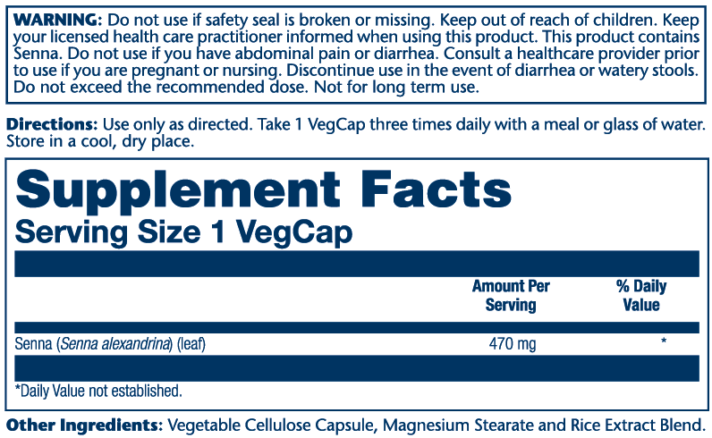 Solaray® Senna Leaf is an all-natural product offering support for constipation relief. It may be used on a short-term basis to help to stimulate and clear the bowel. Senna may promote water absorption by your colon to help soften the stool.