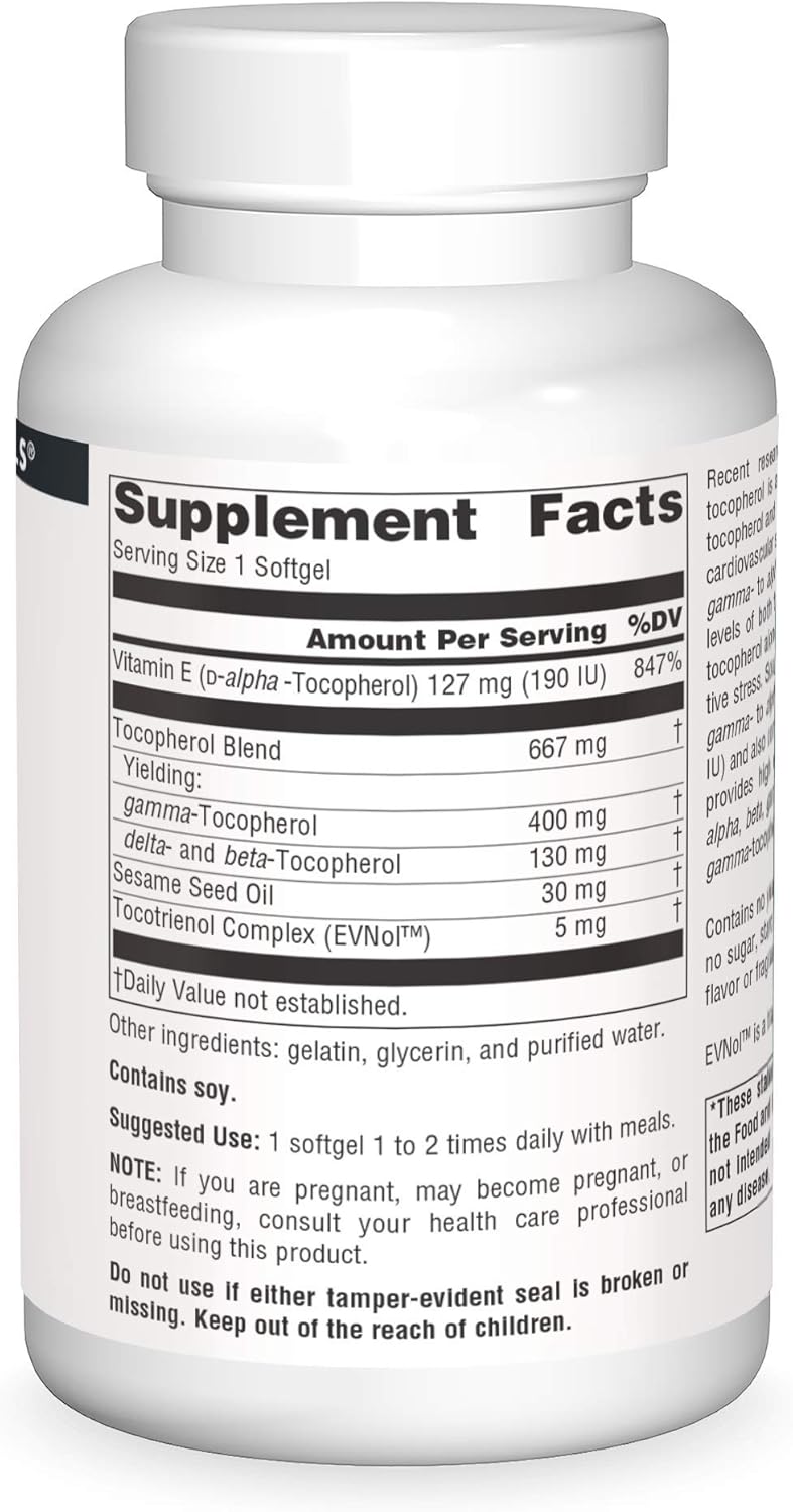 Recent studies have shown that gamma-tocopherol is a superior antioxidant to alpha-tocopherol and can contribute to a healthy cardiovascular system. With Source Naturals GAMMA E 400, you'll get a 3:1 ratio of gamma- to alpha-tocopherol (127 mg equals 190 IU) and tocotrienols from palm fruit, which offer high levels of all four tocotrienols: alpha, beta, gamma, and delta. The base of sesame seed oil, known for its abundance of gamma-tocopherol, is also included.
