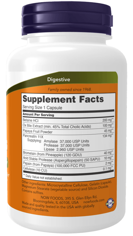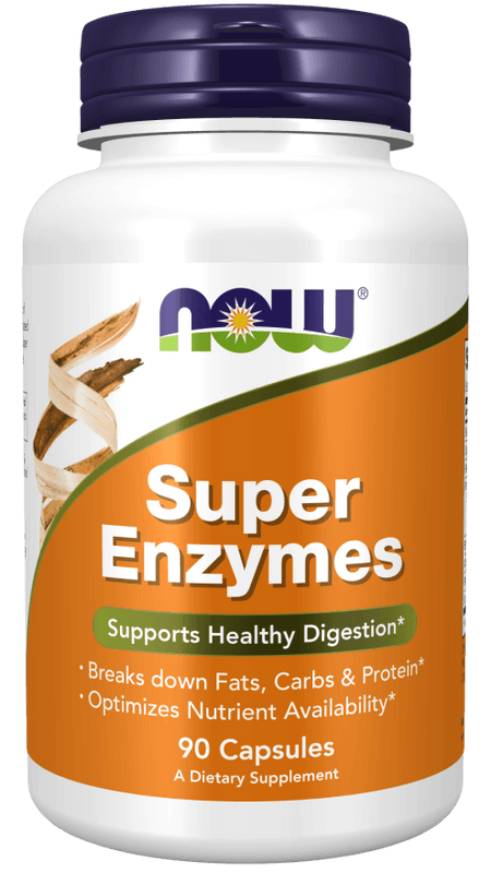 NOW® Super Enzymes is a comprehensive blend of enzymes that supports healthy digestion. Formulated with bromelain, ox bile, pancreatin and papain, Super Enzymes helps to optimize the breakdown of fats, carbohydrates and protein.