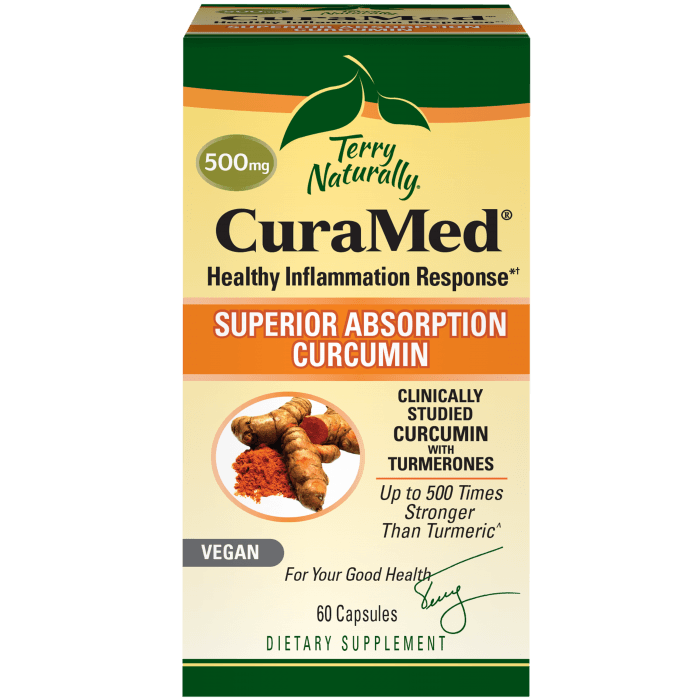 - Terry Naturally's Curamed line is most clinically studied enhanced absorption curcumin product we've ever encountered. If you're familiar with curcumin supplements, you've undoubtedly run across advertisements mentioning absorption. This is due to curcumin's well known poor absorption and enhanced absorption it a common tactic to increase effectiveness.