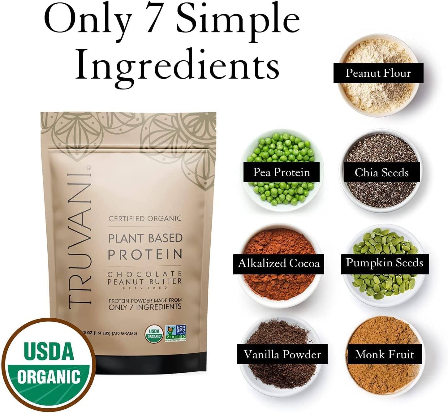 Fuel your body with clean, organic protein! Truvani Plant Protein in Chocolate Peanut Butter has only 7 simple ingredients and a non-gritty texture. Sweetened with monk fruit, it's like a tasty peanut butter cup! Made with love for a healthier you.