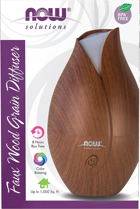 NOW® Solutions Ultrasonic Faux Wood Grain Diffuser unites scientific innovation with contemporary design to create an essential oil diffuser that's the perfect complement to your home or office. This attractive, flower-shaped diffuser is BPA-free and utilizes high-frequency ultrasonic electrical vibrations to create an ultra-fine aromatherapy mist. This diffusion method doesnʼt utilize heat, which maintains essential oil integrity and holistic properties. Perfect for daily use, with an automatic shut-off and up to 8 hours of quiet operation, this attractive diffuser with rotating colors is a healthy alternative to synthetic room fresheners and scented candles.