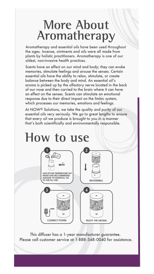 NOW® Solutions new Metal Touch Ultrasonic Diffuser is a sleek and contemporary diffuser that complements almost any décor and makes a healthy alternative to scented candles and aerosol air fresheners. This attractive unit has rotating LED lights, runs up to seven hours continuously, and has a total run life of 5,000+ hours.