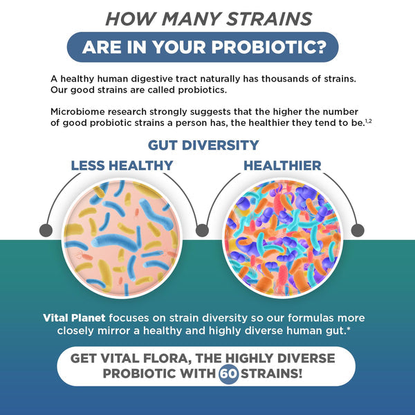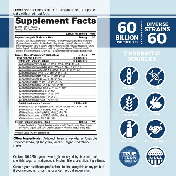 Vital Flora Immune Biome Probiotic, 60 Billion CFU, 60 Diverse Strains + 7 Organic Prebiotics