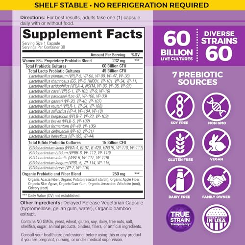 Ladies, feel more confident in your daily probiotic! VITAL FLORA WOMEN 55+ DAILY contains a special ratio of beneficial probiotics with more Lactobacillus strains for women over 50 to support your vaginal, digestive, urinary and immune health.